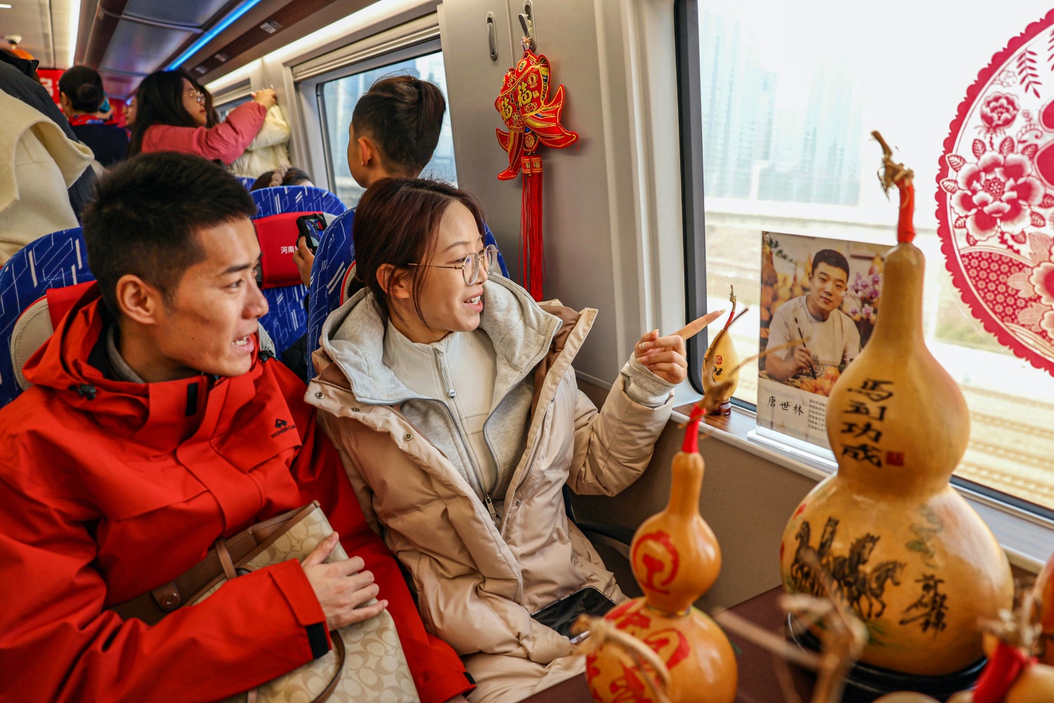 “没想到高铁旅途这么温馨,还有文化表演和节日布置,感觉回家路特别有意义。”带着女儿乘车的王女士表示。