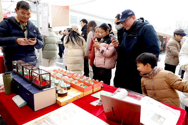 此次迎宾市集以“品质年货+文化体验”为核心,设置百余个特色摊位,涵盖河南特产、非遗文创、国宾好礼、生鲜粮油、零食礼品五大核心区域,汇集十八地市风物与精选好物。在河南特产区,道口烧鸡、信阳毛尖、温县铁棍山药等本土招牌产品集中亮相,真空包装的礼盒装既保留传统风味,又方便市民馈赠亲友;非遗文创区里,汝瓷冰裂纹盏、牡丹瓷、剪纸、捏面人等传统手工艺品琳琅满目,匠人现场展示制作技艺,让市民在选购中感受中原文化的千年底蕴;国宾好礼区则依托黄河迎宾馆的甄选标准,推出多款精致礼盒,兼顾品质与仪式感,成为走亲访友的热门选择。