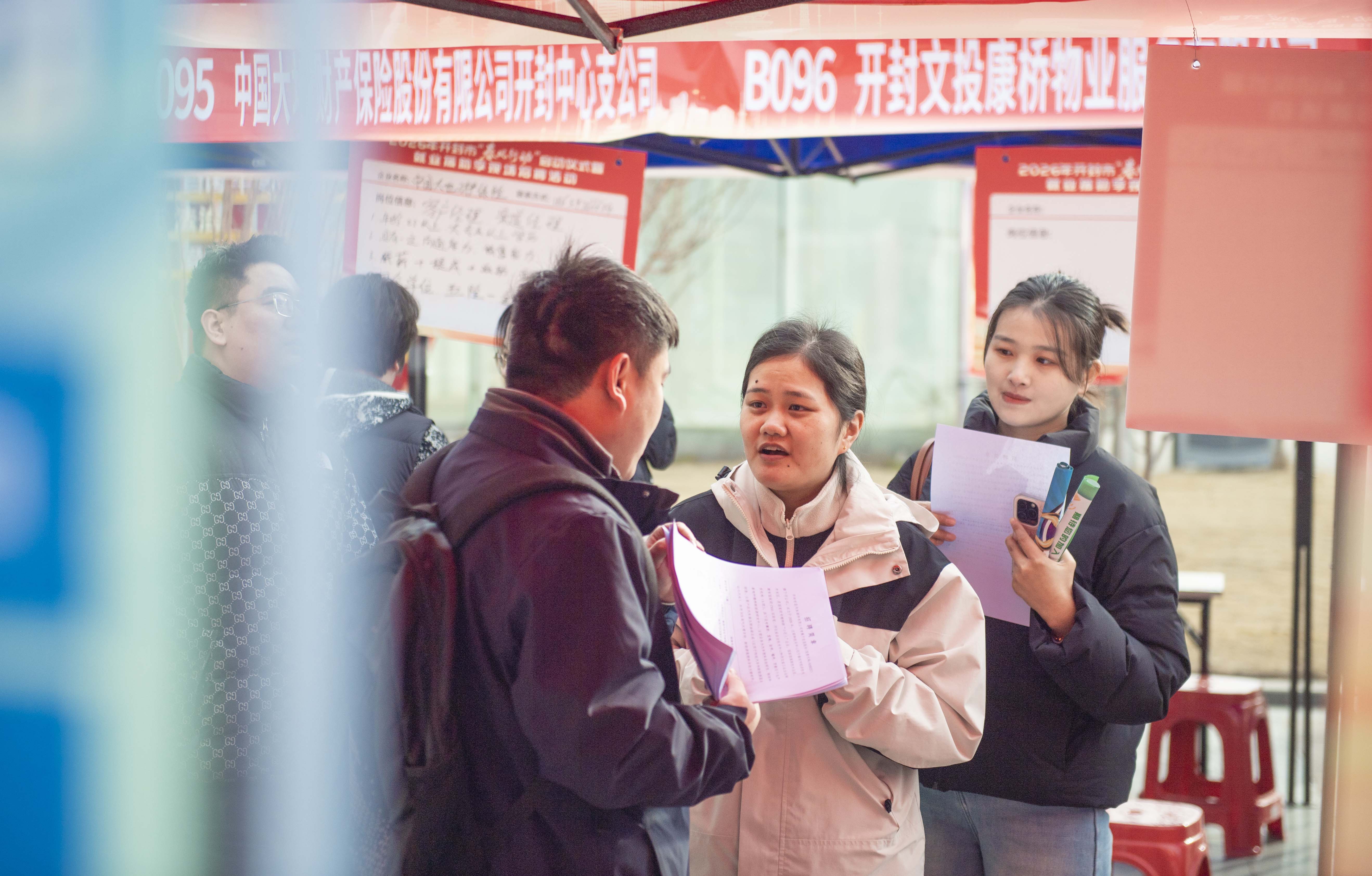 招聘现场,一早从祥符区八里湾镇家中赶来的小琪,拎着双肩包,攥着一沓简历,穿行在摊位之间,寻觅着合适的岗位。小琪说她大学毕业后,在郑州做了两年半的销售工作,春节后想找个离家近点的工作,专程来看看。