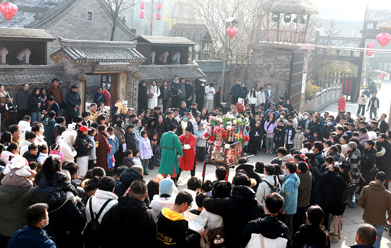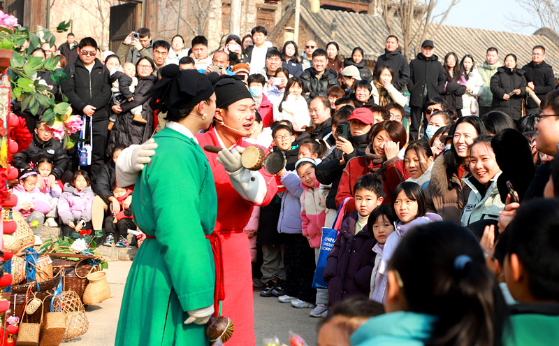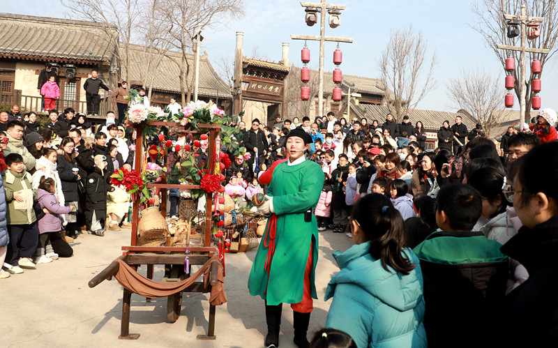 街巷烟火气《货郎担》带你穿越时空,入戏成瘾,2026年1月3日,郑州市建业电影小镇太极村上演一场非遗文化表演,引来众多游客围观。该节目《货郎担》是该小镇推出的一项非遗文化演绎节目。