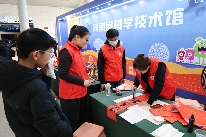 与此同时,写春联送祝福活动热度高涨,书法家现场挥毫创作“马跃神州兴科普,春满绿城育栋梁”等特色春联,墨香中融入科普元素,让市民在传承民俗的同时感受科学魅力。